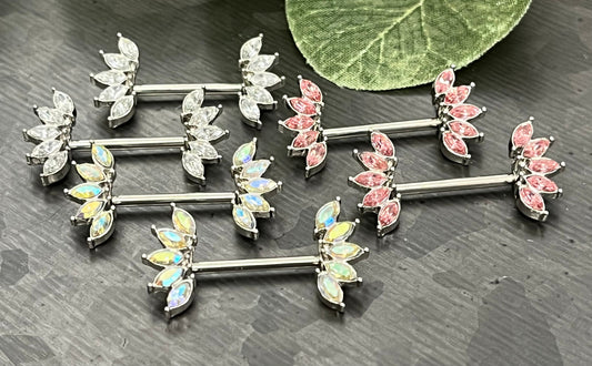 PAIR of Stunning Marquise Crystal Gem Fans Steel Nipple Barbells / Rings
