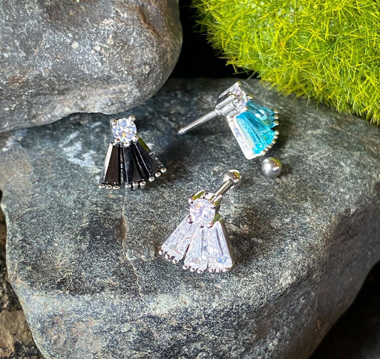 1pc CZ Gem Paved Triangle Tragus Helix Cartilage Barbell Ring 16g 1/4"