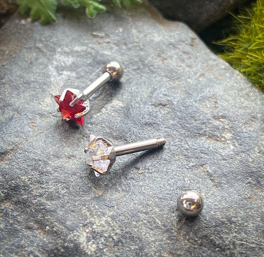 3pc Bulk Pack 3mm-4mm-5mm Prong Set Star Gem Tragus Cartilage Ring 16g 1/4"