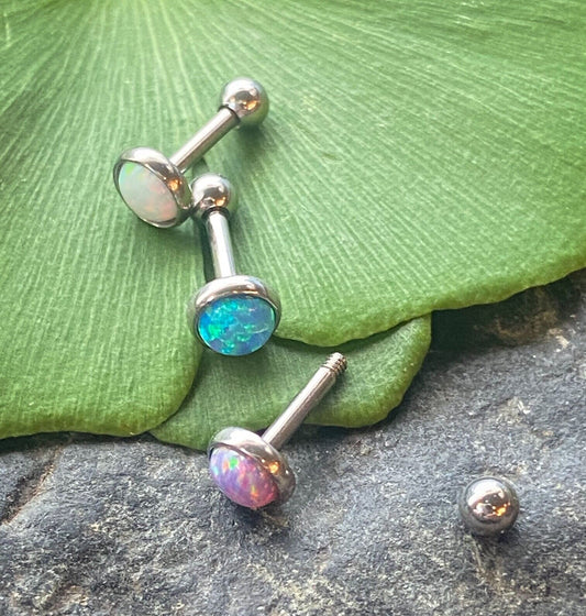 1pc Opal Glitter Dome Top Tragus Helix Cartilage Ring Barbell 16g 1/4"