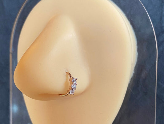 1pc 3-CZ Gems w/ Chain Bendable Hoop Ring- Nose Septum, Daith, Ear Cartilage