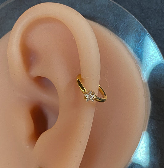 1pc Bendable Hoop Ring With Prong Set CZ Star Gem Annealed 316L Surgical Steel