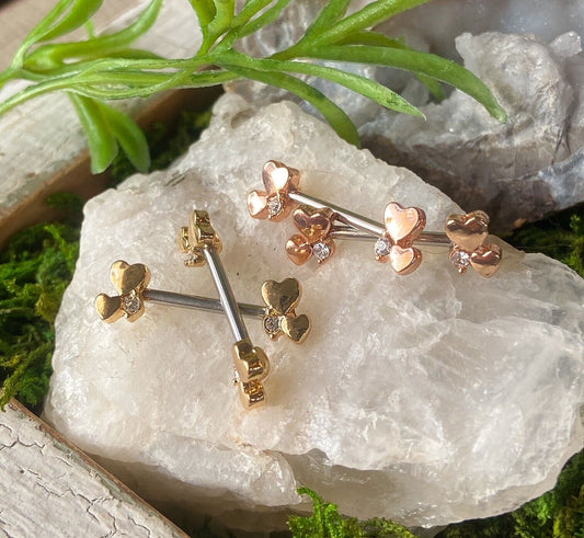 PAIR Heart Cluster Ends Nipple Rings Shields Barbells Body Jewelry