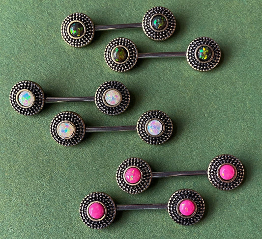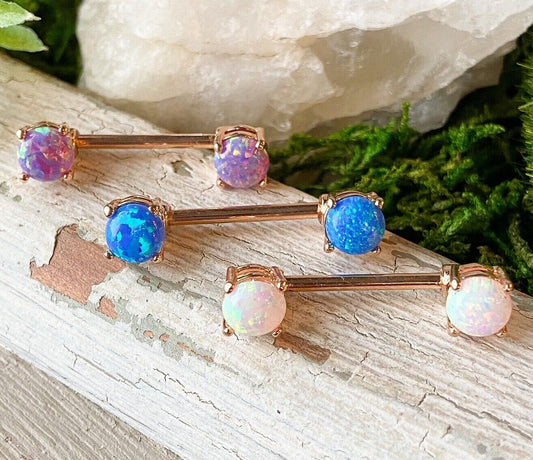 PAIR Synthetic Opal Nipple Rings Shields Barbells Pierced Body Piercing Jewelry