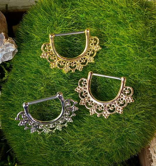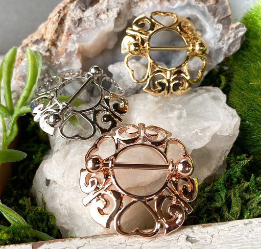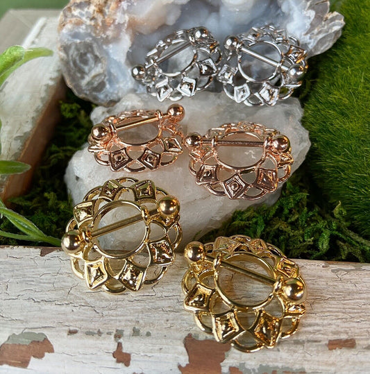 PAIR CZ Set Floral Filigree Nipple Rings Shields Pierced Body Piercing Jewelry