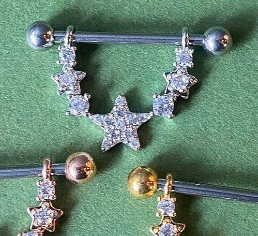 PAIR Gem Paved Stars Dangle Nipple Rings Shields Barbells Piercing Body Jewlery