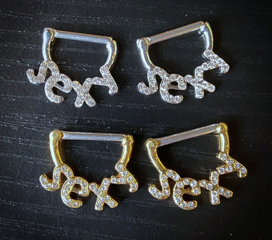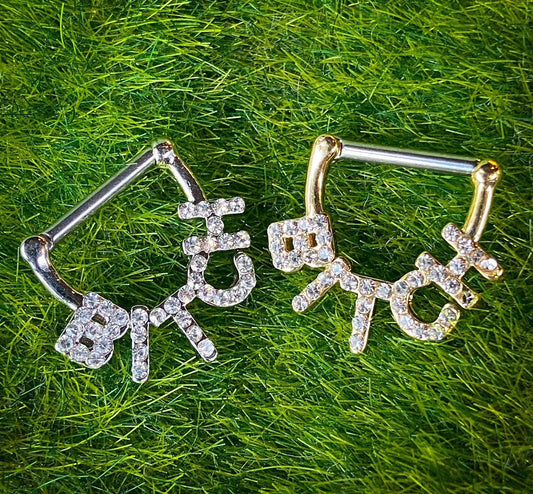 PAIR Crystal Paved Bitch Design Nipple Clickers Shields Rings Body Jewelry