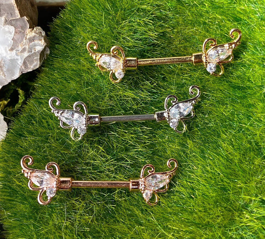 PAIR Gem Paved Leaf Dangle Nipple Rings Shields Piercing Pierced Body Jewelry