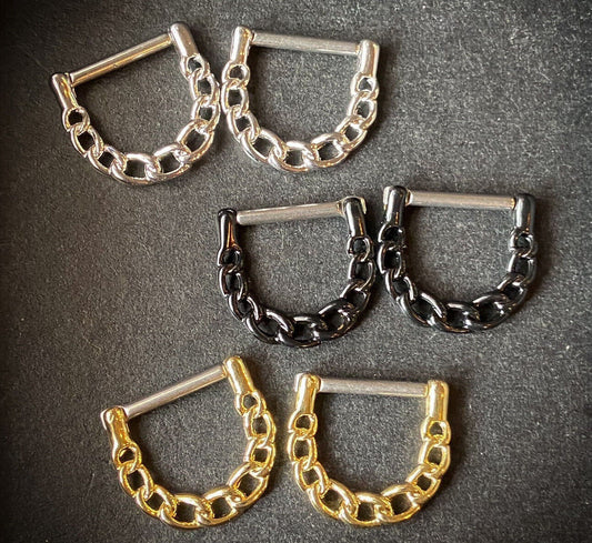 PAIR Linked Chain Design Nipple Clickers Shields Rings Body Piercing Jewelry