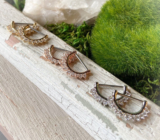 PAIR Pronged Gem Half Circle Plated 316L Steel Nipple Shields Rings Body Jewelry