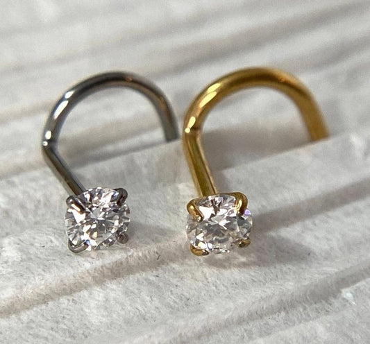 5pcs Prong Set Gem Nose Ring Screws 316L Surgical Steel - choose gem size