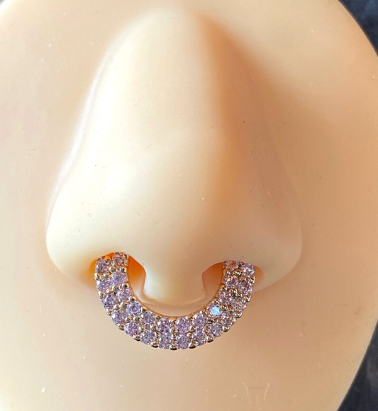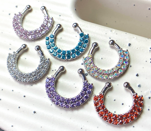 1pc Non-Piercing Double Line Paved Gem Septum Hanger Clip-On Fake Nose Ring