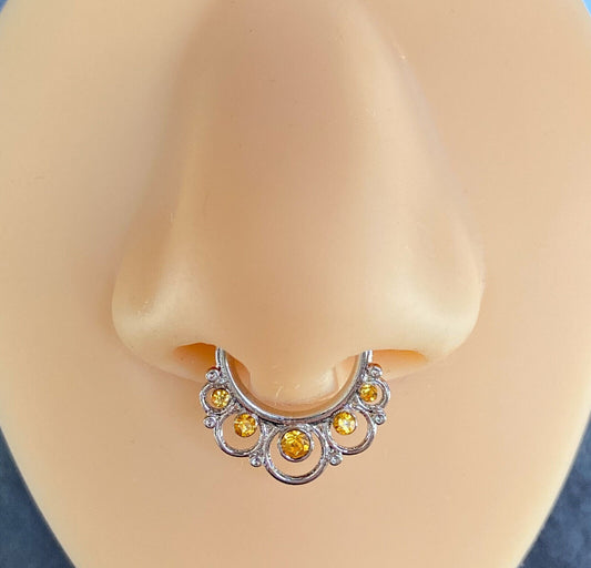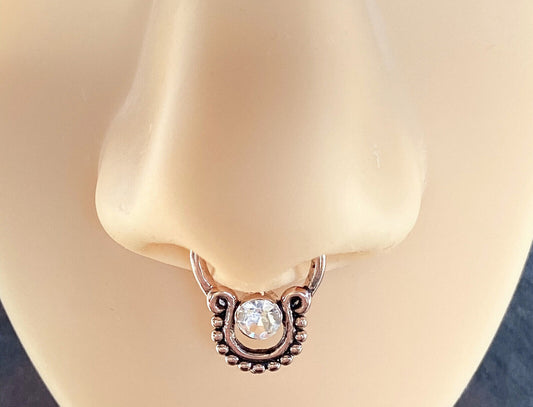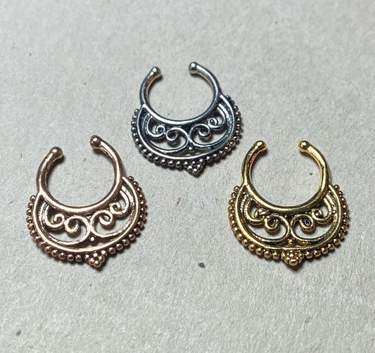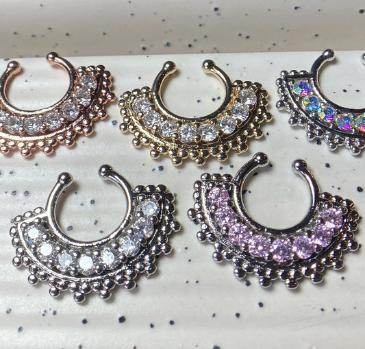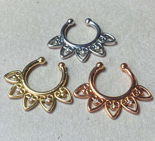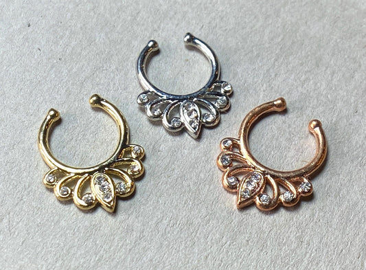 1pc Non-Piercing Filigree w/Gems Septum Hanger Clip-On Fake Nose Ring