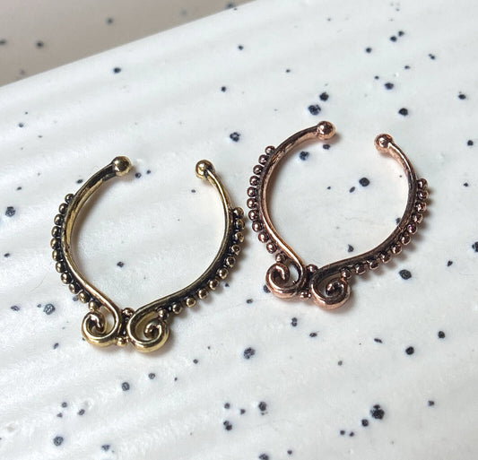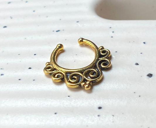 1pc Non-Piercing Tribal Swirls Septum Hanger Clip-On Fake Nose Ring Body Jewelry