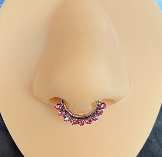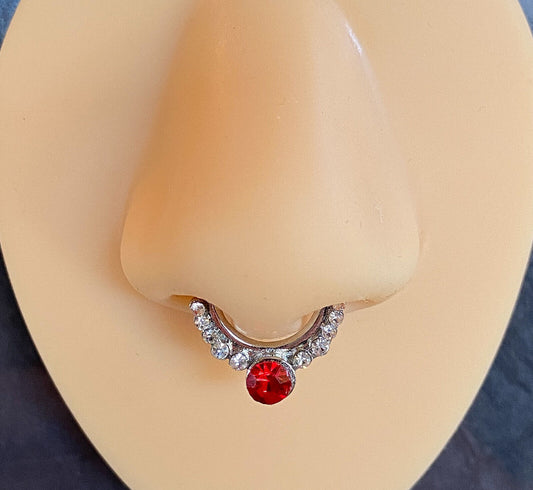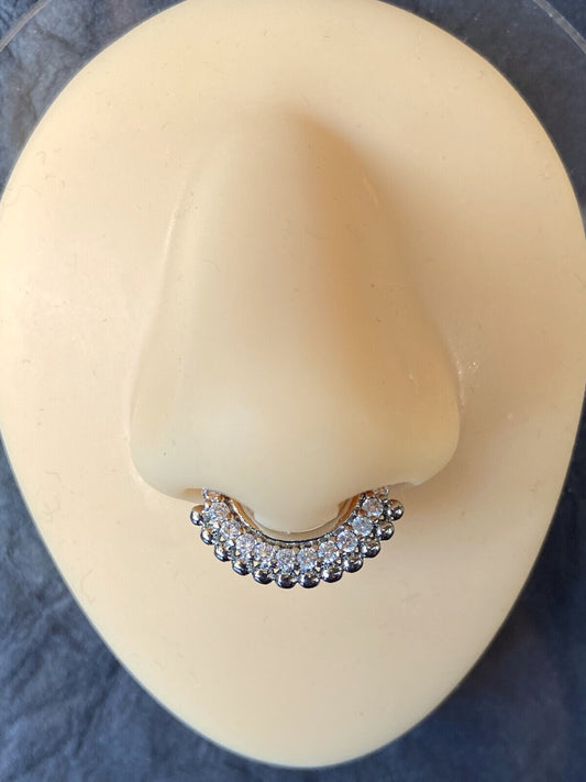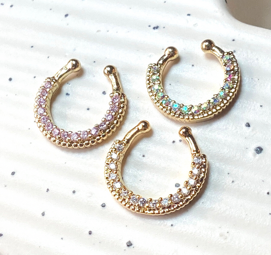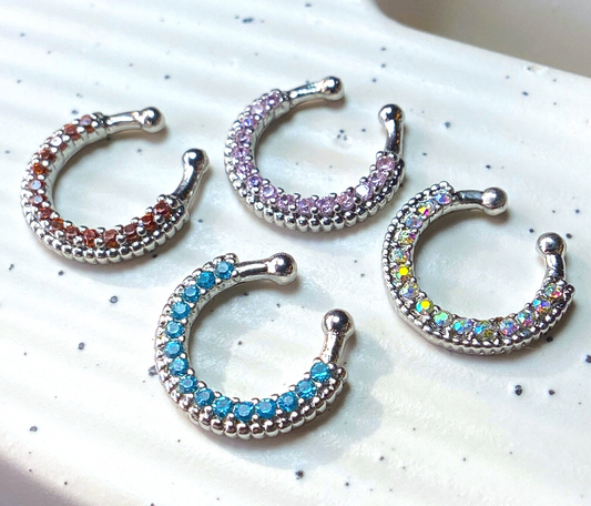 1pc Non-Piercing Beaded Trim w/Gems Septum Hanger Clip-On Fake Nose Ring
