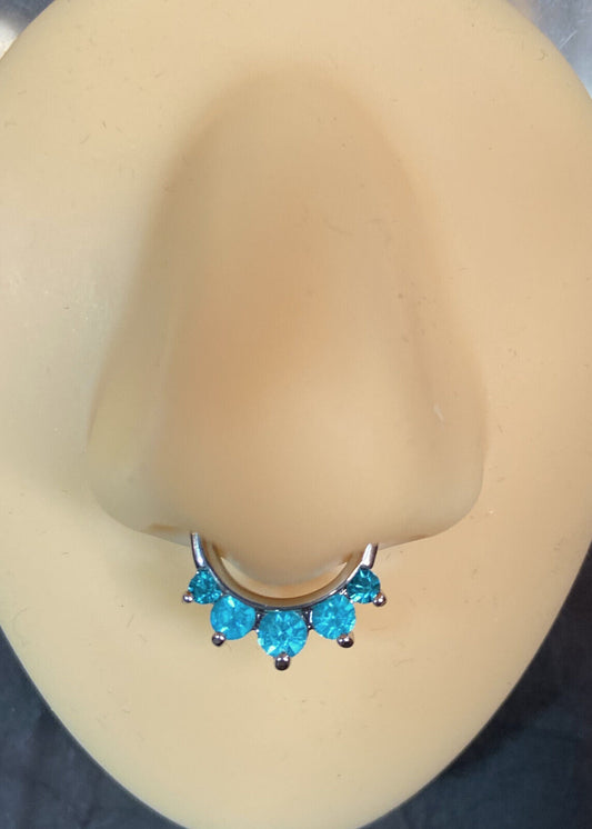 1pc Non-Piercing Five Paved Gems Septum Hanger Clip-On Fake Nose Ring