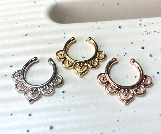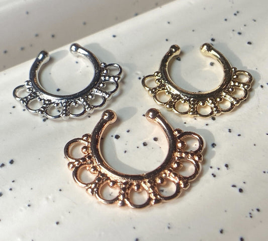 1pc Non-Piercing Lacey Edge Septum Hanger Clip-On Fake Nose Ring Body Jewelry