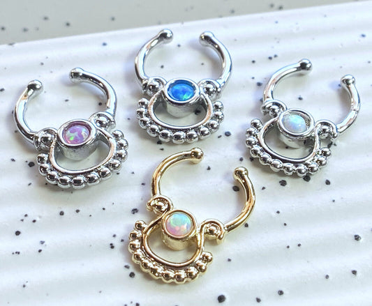 1pc Non-Piercing Single Opal Septum Hanger Clip-On Fake Nose Ring Body Jewelry