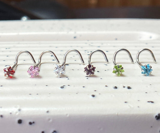 1pc Surgical Steel Nose Screw Ring w/Star Prong Set Gem 18g,20g - choose color