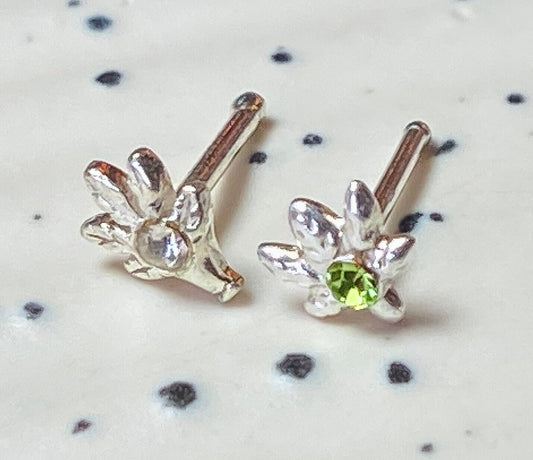 1pc Pot Leaf Marijuana .925 Sterling Silver Nose Stud Ring 20g- choose gem color