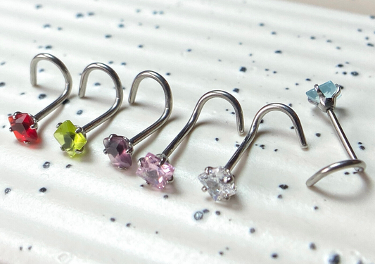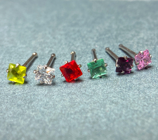 1pc Surgical Steel Nose Screw Ring w/Square Prong Set Gem 18g, 20g- choose color