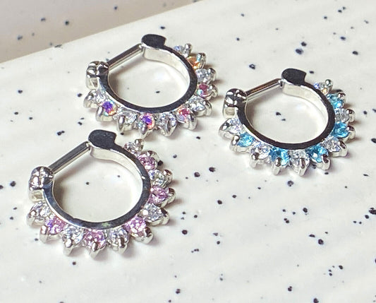 1pc Alternating Color Gems Septum Clicker 316L Surgical Steel 16 gauge Nose Ring