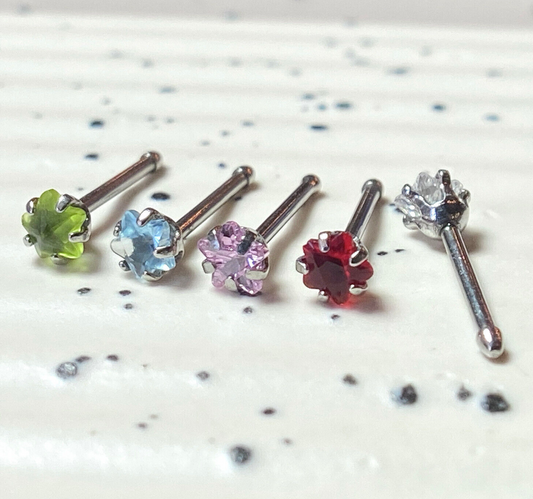 1pc Surgical Steel Nose Stud Ring w/Star Prong Set Gem 20g - choose color