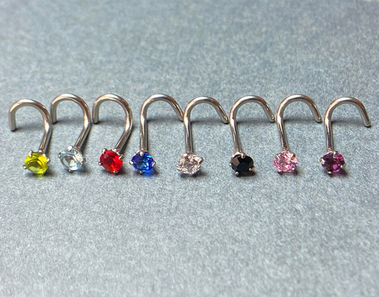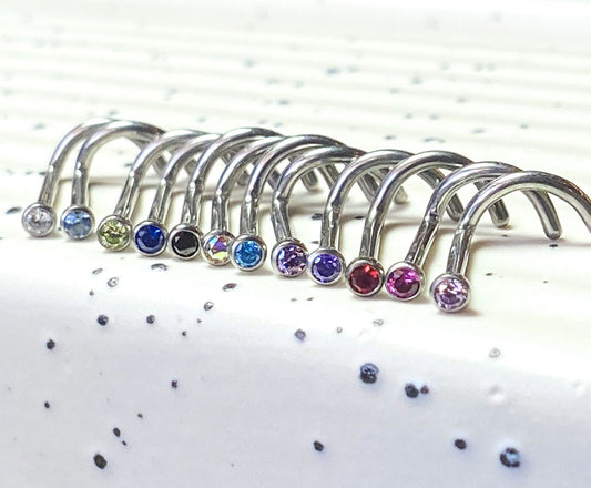 1pc Surgical Steel Nose Screw Ring Round Prong Set Gem 18g or 20g- choose color