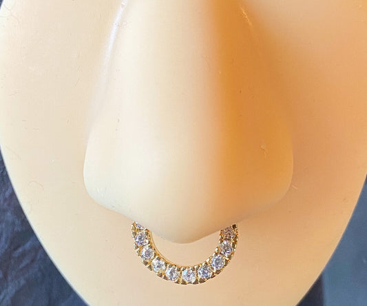 1pc Gold Plated 10 Paved Gem Septum Clicker 316L Surgical Steel 16g Nose Ring