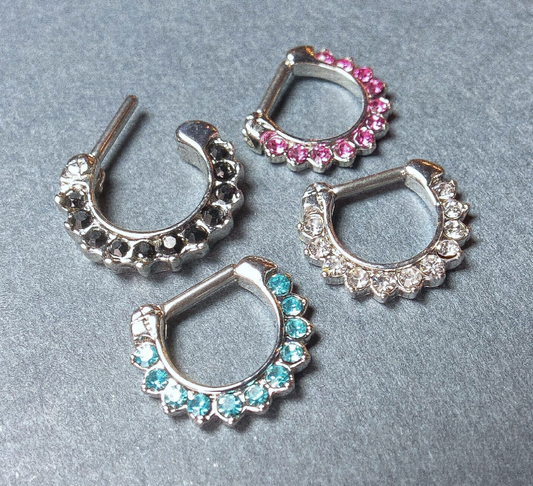 1pc Paved 11-Gem Septum Clicker 316L Surgical Steel 16g Nose Ring