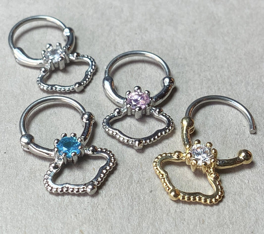 1pc Single CZ Gem Design Septum Clicker 316L Surgical Steel 16g Nose Ring