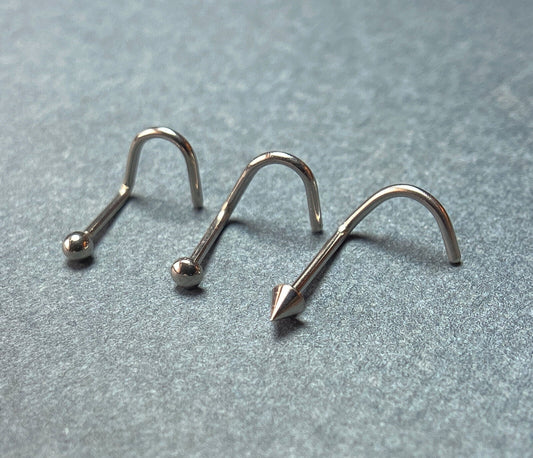 1pc Surgical Steel Nose Ring Screw - 20g or 18g, choose dome / ball / spike end