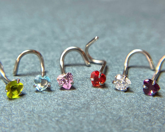 1pc Surgical Steel Nose Screw Ring w/Heart Prong Set Gem 18g,20g - choose color