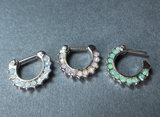 1pc Opalites 11-Gem Septum Clicker 316L Surgical Steel 16g Nose Ring