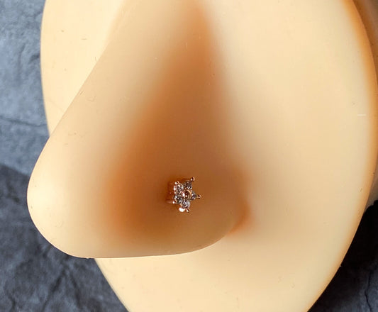 1pc CZ Gem Flower Starburst L-Bend Nose Ring Stud Screw 316L Surgical Steel