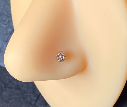 1pc Flower CZ Gem 20g Nose Ring Stud Bone Double Tiered 316L Surgical Steel
