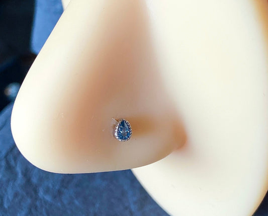 1pc Teardrop CZ Gem 20g Nose Ring Stud Bone Tear Drop 316L Surgical Steel