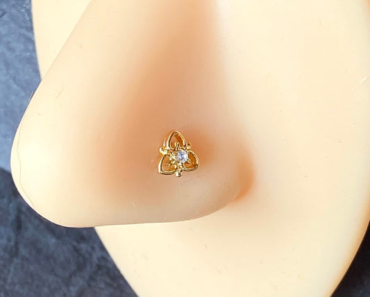 1pc Heart Filigree Gem L-Bend Nose Ring Stud Screw 316L Surgical Steel