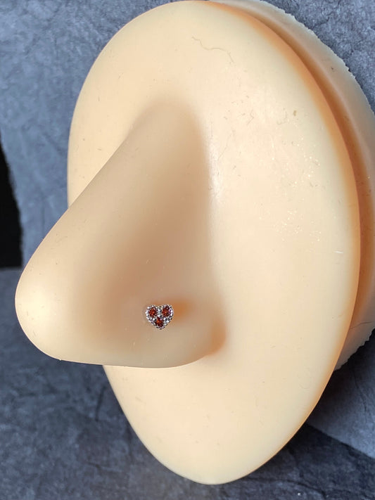 1pc CZ Gem Paved Heart 20g Nose Ring Stud Bone 316L Surgical Steel