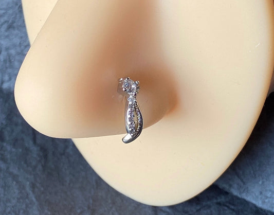 1pc Crawling CZ Gem Top 20g Nose Ring Stud Bone 316L Surgical Steel