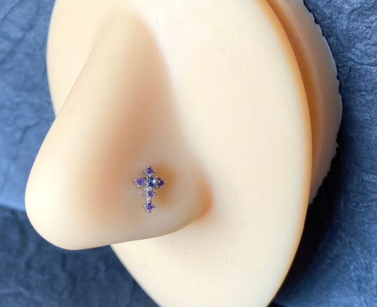 1pc CZ Gem Cross 20g Nose Ring Stud Bone 316L Surgical Steel