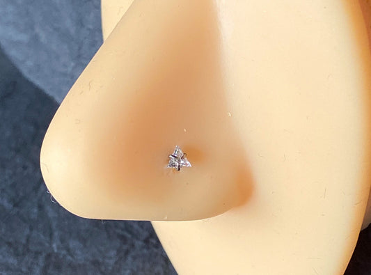 1pc Clear Triangle CZ Gem Top L-Bend Nose Ring 316L Surgical Steel 18g or 20g