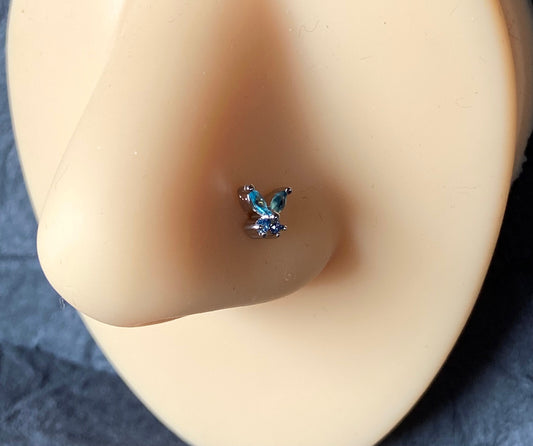 3pc Value Pack L-Bend CZ Gem Butterfly 20g Surgical Steel Nose Rings