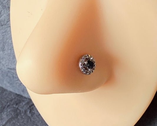 1pc Solid Implant Grade Titanium Grade 23 6AL4V-ELi L-Bend Bezel Gem Nose Ring