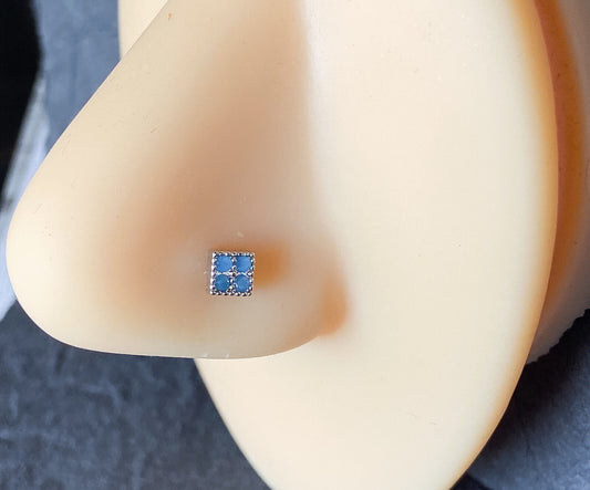 Four Turquoise Stones Square Top 20g Surgical Steel L-Bend Nose Stud Bone Ring