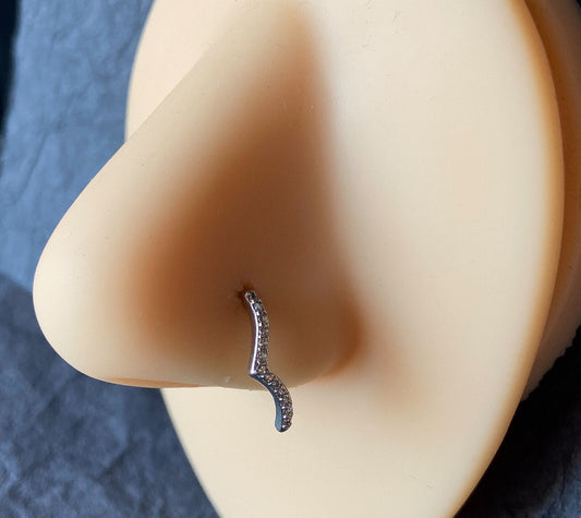 1pc CZ Paved Twisted Bar Nose Hoop / Cartilage Ring Rook Daith Helix Tragus