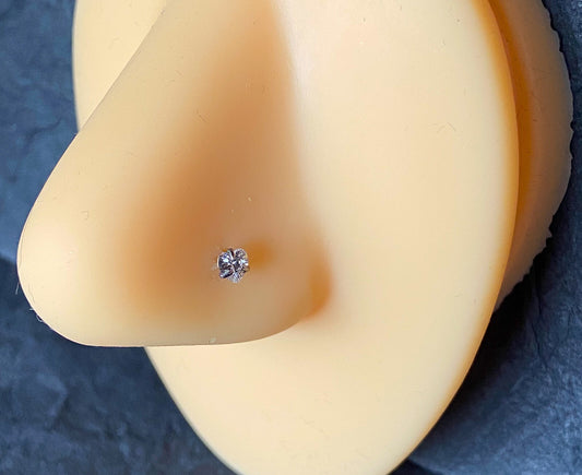 1pc Solid Grade 23 Titanium L-Bend Nose Ring w/ Heart CZ Gem Stud Screw