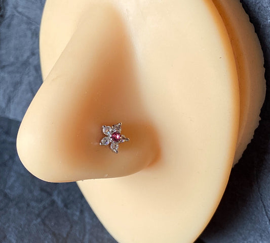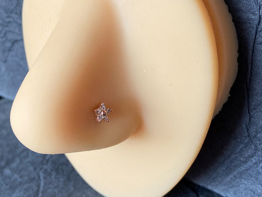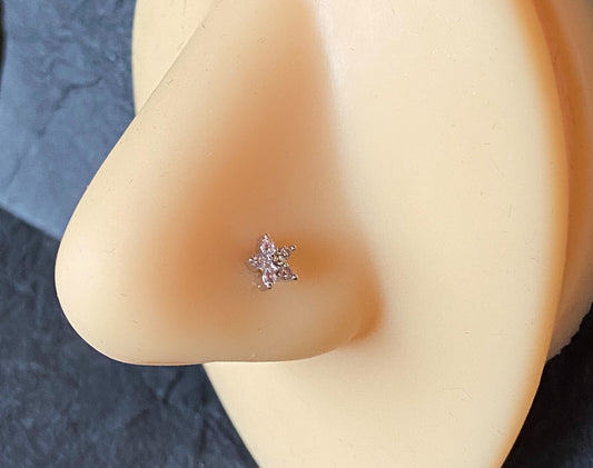 1pc Six CZ Gem Paved Flower Top 20g Nose Ring Stud 316L Surgical Steel