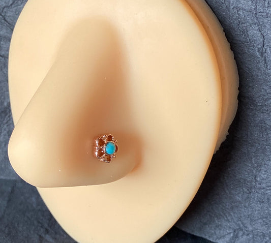 1pc Filigree Flower w/Turquoise Stone Center 20g L-Bend Nose Ring Stud Screw