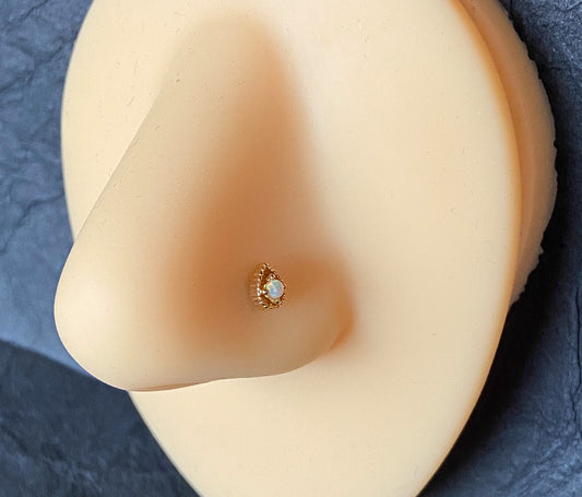 1pc Tear Drop w/ Opal Center 20g L-Bend Nose Ring Stud Screw 316L Surgical Steel